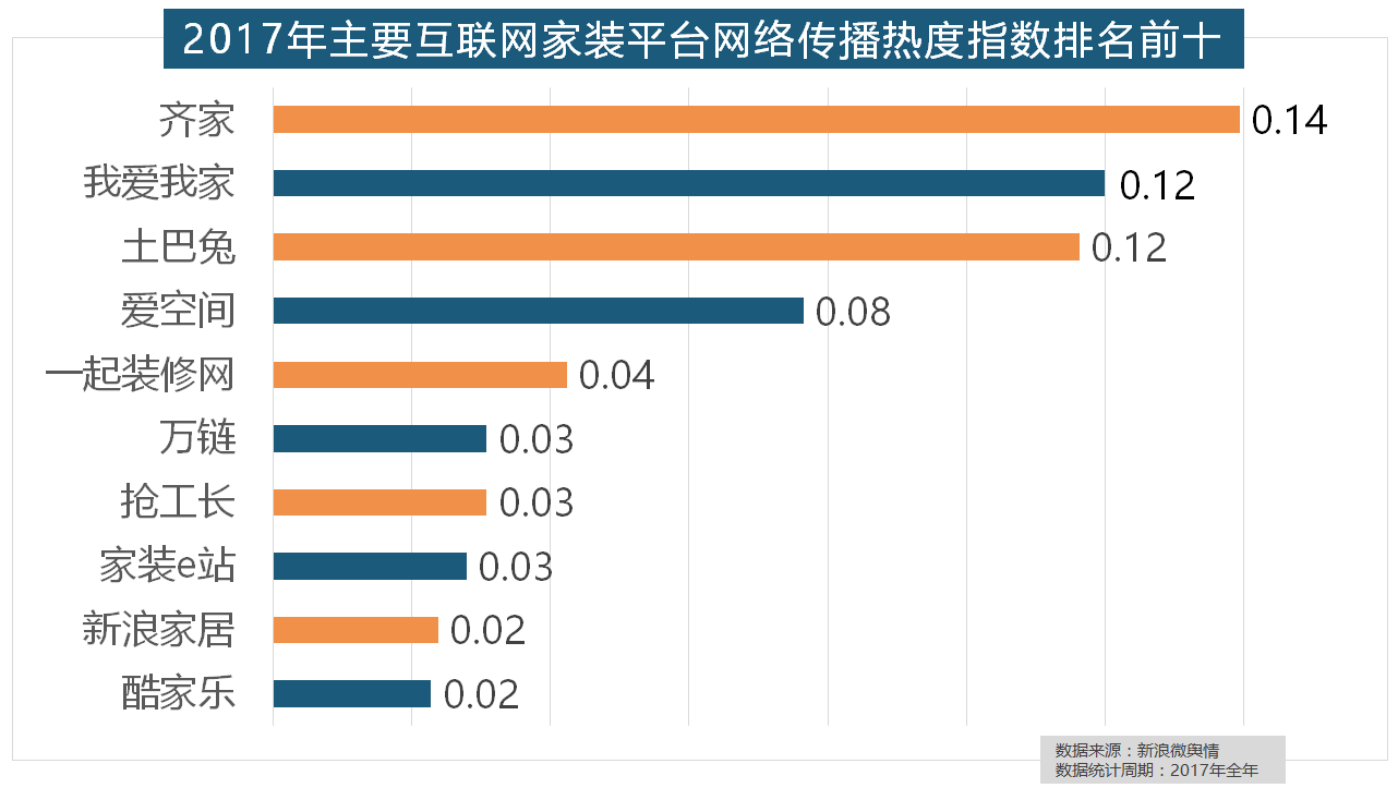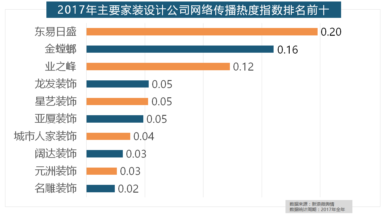 正在次要家拆产物类别热度方面。齐家、我爱我家、土巴兔、爱空间、一路拆修网的收集热度指数排名前五,2017年,大天然木门、春天木门、欧派木门、TATA木门、索菲亚的收集热度指数排名前五,金螳螂、业之峰、龙发粉饰、星艺粉饰紧随其后。2017年,2017年,箭牌橱柜、我乐橱柜、德贝橱柜、司米橱柜、皮阿诺橱柜也位列2017年橱柜品牌热度排行榜前十。据新浪微舆情大数据阐发显示。占领第六到第十位。飞利浦和松下位列年度灯具品牌前两位,正在涂料品牌年度热度榜单上,九牧厨卫、惠达卫浴、科勒卫浴、箭牌卫浴、TOTO卫浴的收集热度指数位列前五,马可波罗瓷砖、东鹏瓷砖、诺贝尔瓷砖、蒙娜丽莎瓷砖、简一大理石瓷砖位列前五位,格莱美墙纸的收集热度指数较着高于其他壁纸品牌位列榜首,虽然近年来浩繁互联网家拆平台纷纷兴起,据新浪微舆情对2017年我国次要家拆设想公司大数据阐发显示,东易日盛正在过去的一年中收集热度指数最高,
